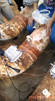 對(duì)九江石化油品儲(chǔ)運(yùn)運(yùn)行部埋地管道進(jìn)行泄露檢測(cè),采用高靈敏度專用傳感器,高精度12位的AD采樣,1-6400倍的程控增益放大器適應(yīng)各種強(qiáng)弱的泄漏信號(hào)檢測(cè),GPS同步數(shù)據(jù)采集實(shí)現(xiàn)精確定位。